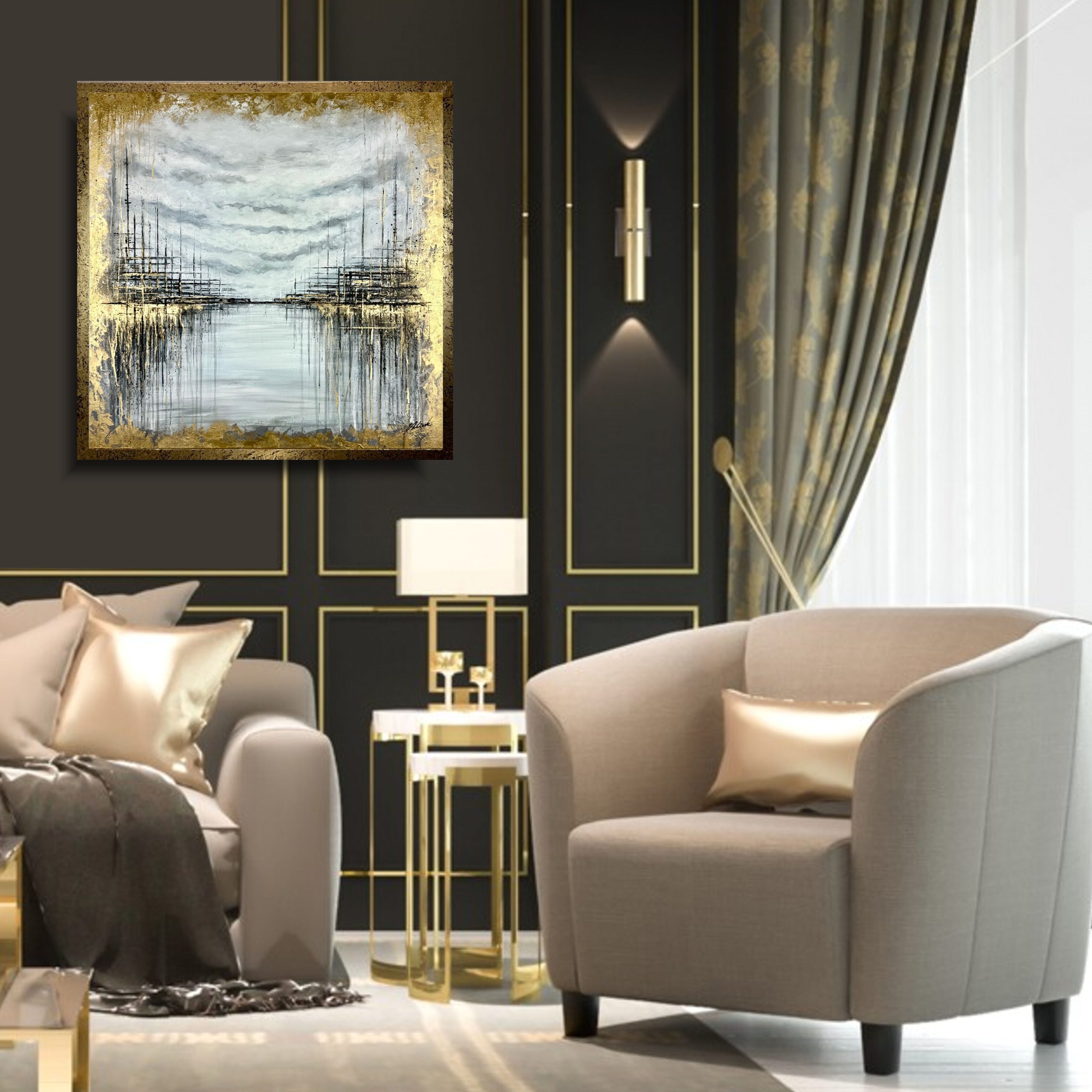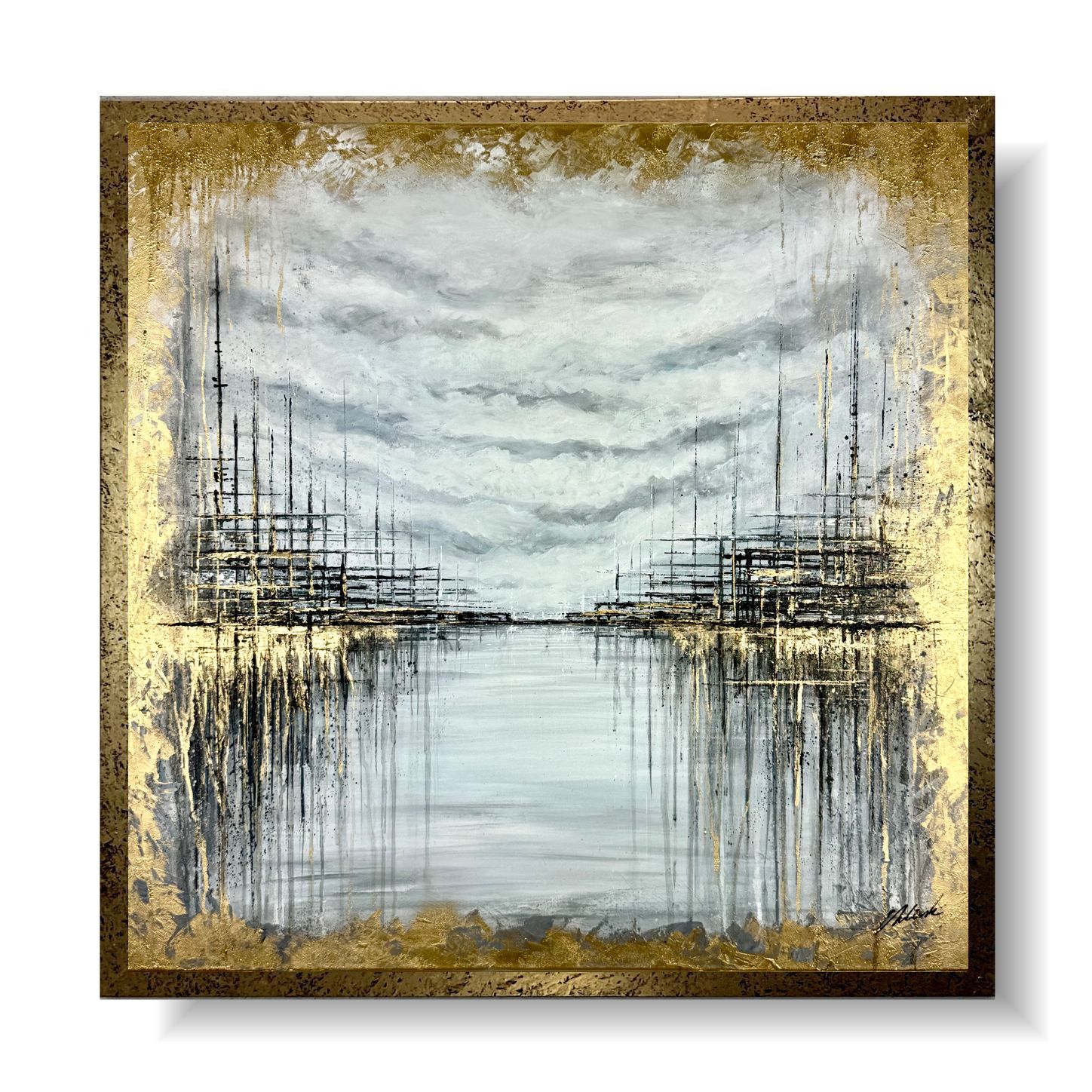 Abstrakcja obraz do salonu 1998Z „Złote nabrzeże” 100x100cm
