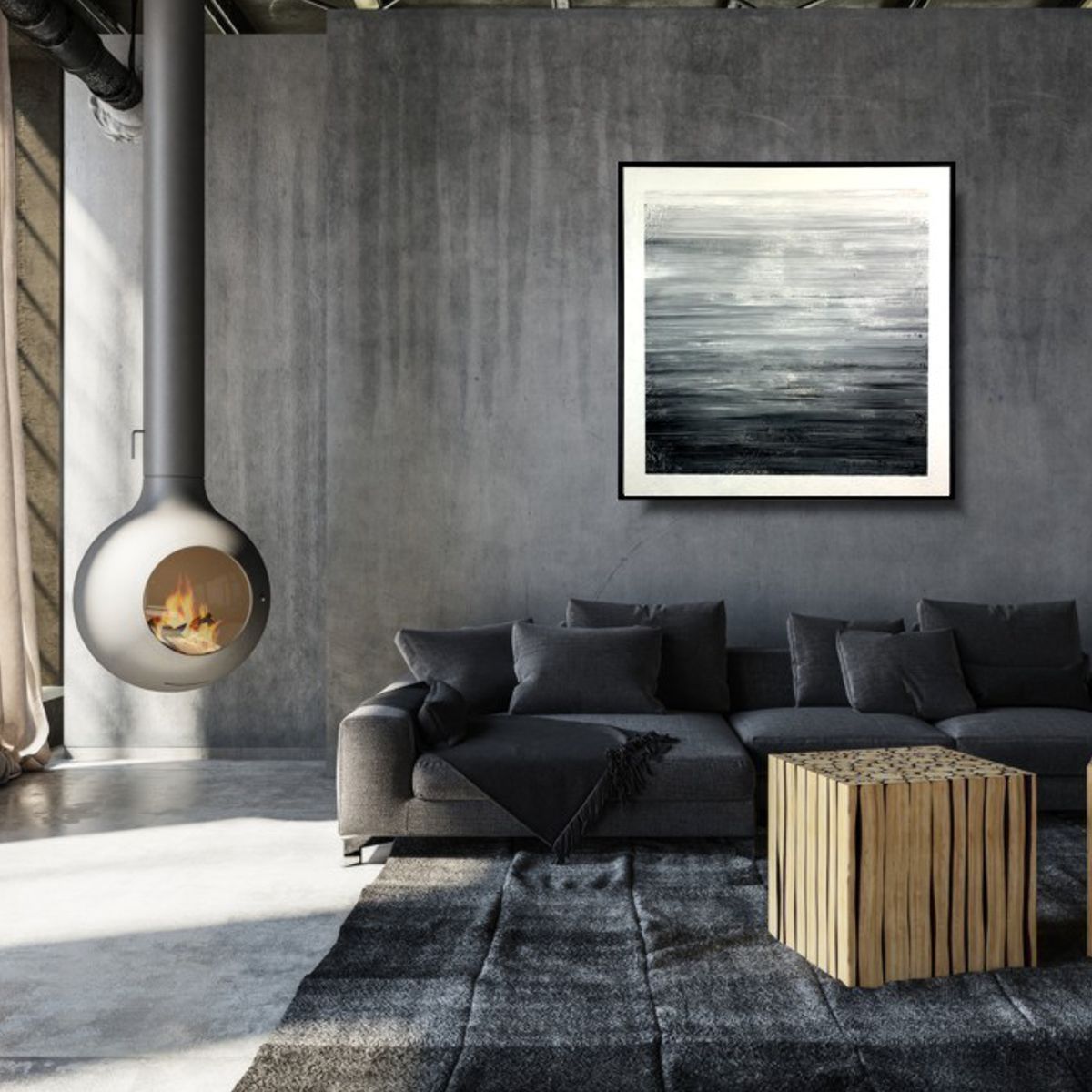 Czarno biała abstrakcja 2182Z „W oddali” 90x90cm