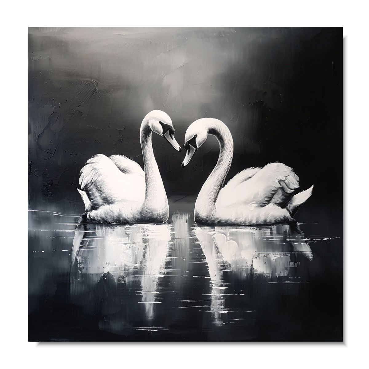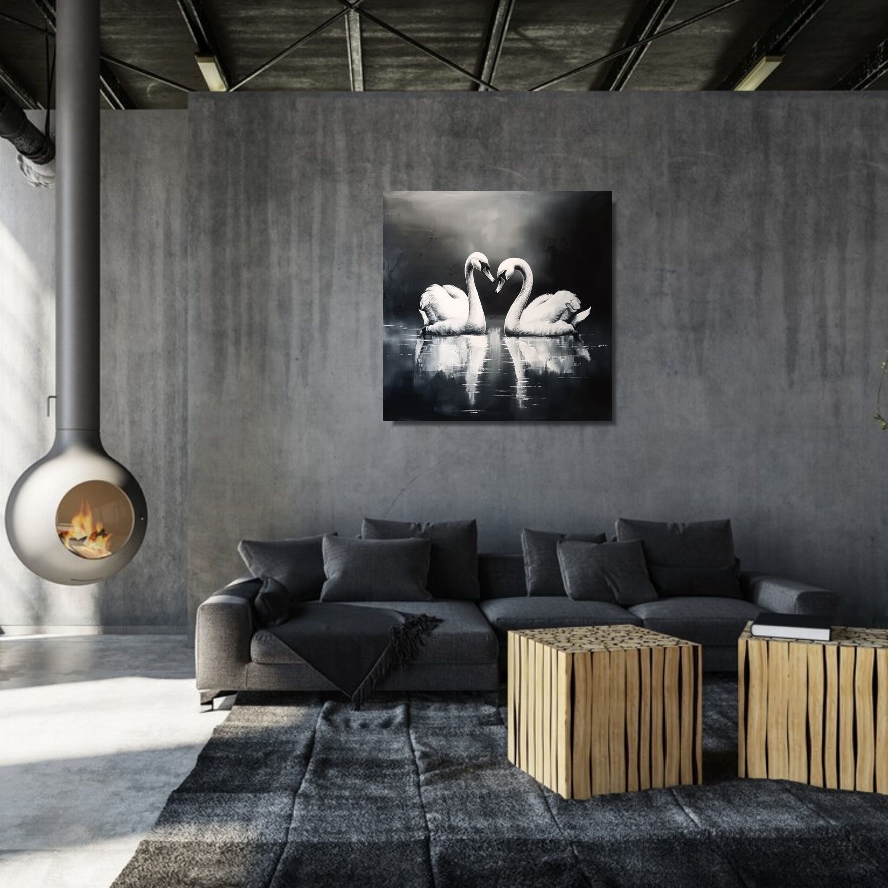 Czarno białe obrazy loft wydruki WW9 “Rodzina łabędzi” 70x70cm