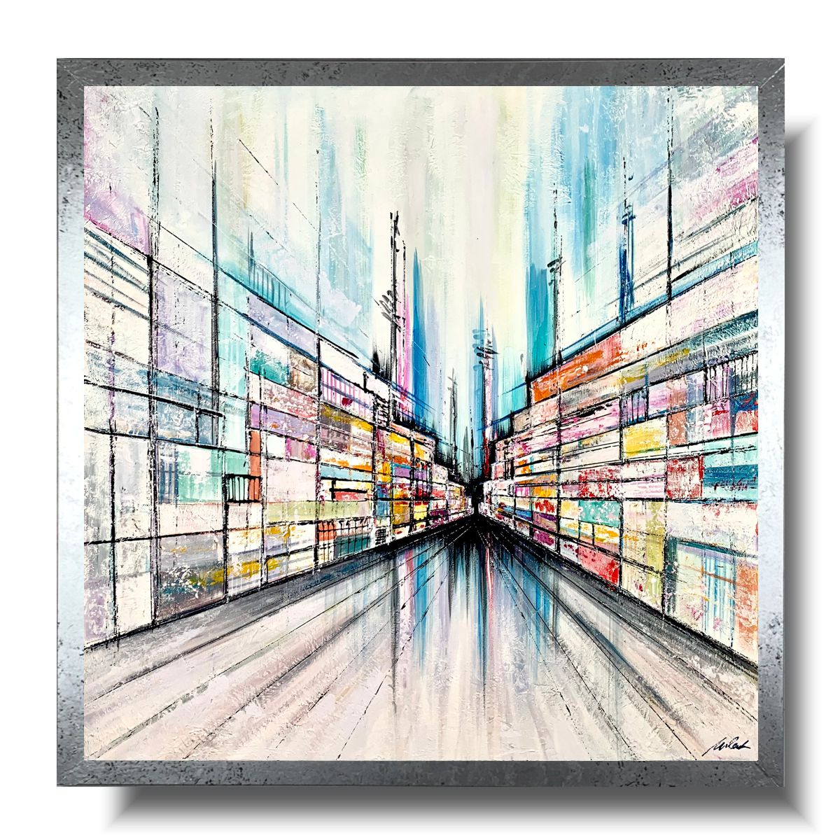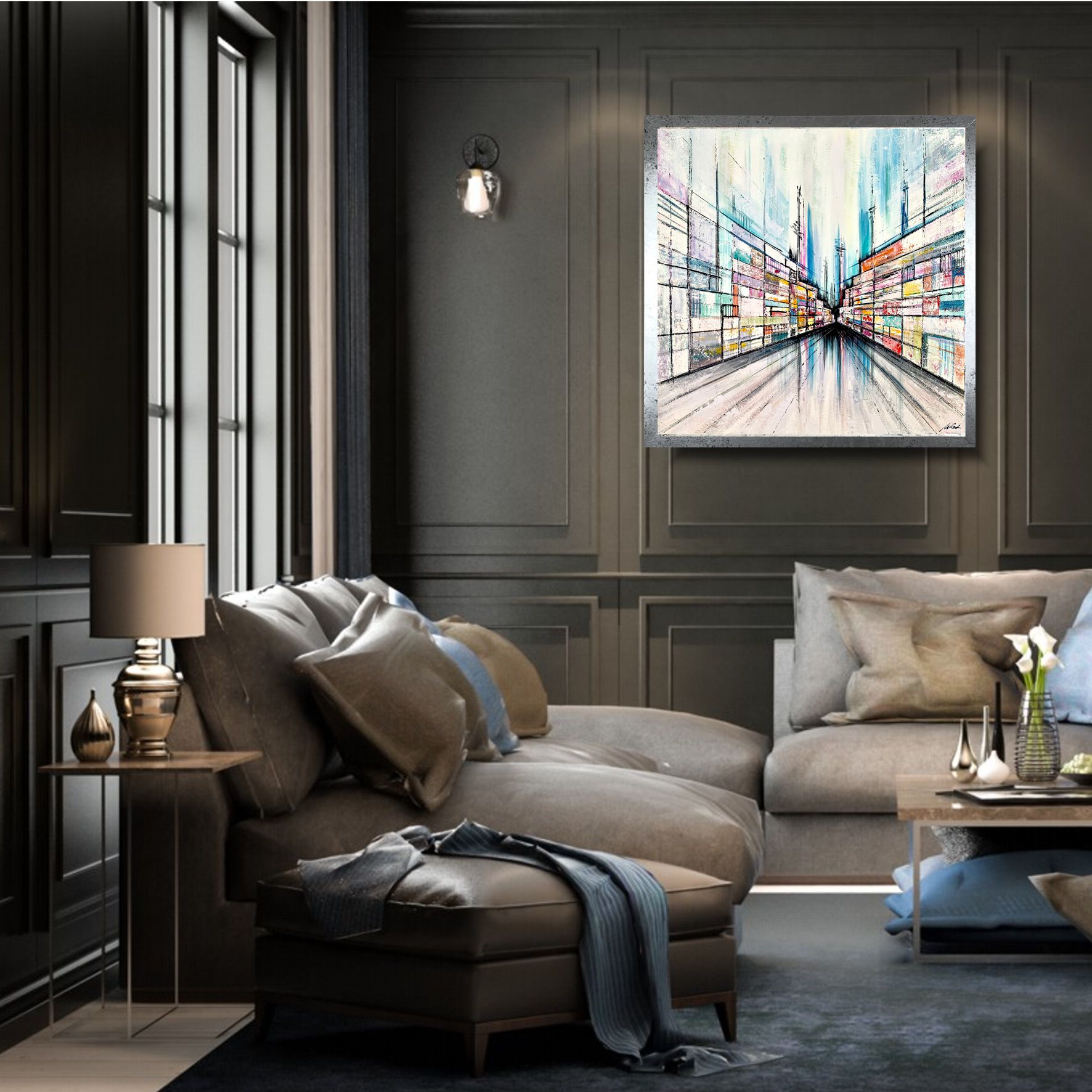 Kolorowy obraz 2187Z „Miasto wciąga mnie” 80x80cm
