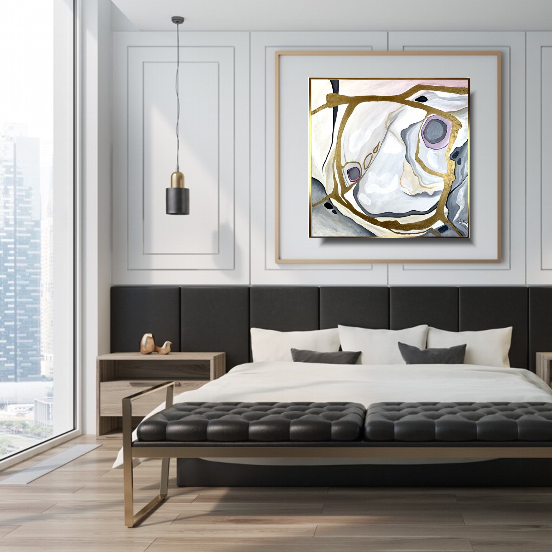 Nowoczesny obraz abstrakcja 2184Z „Złoty marmur” 80x80cm