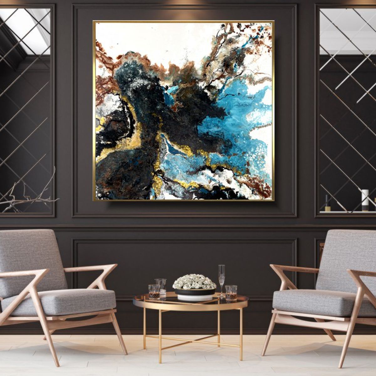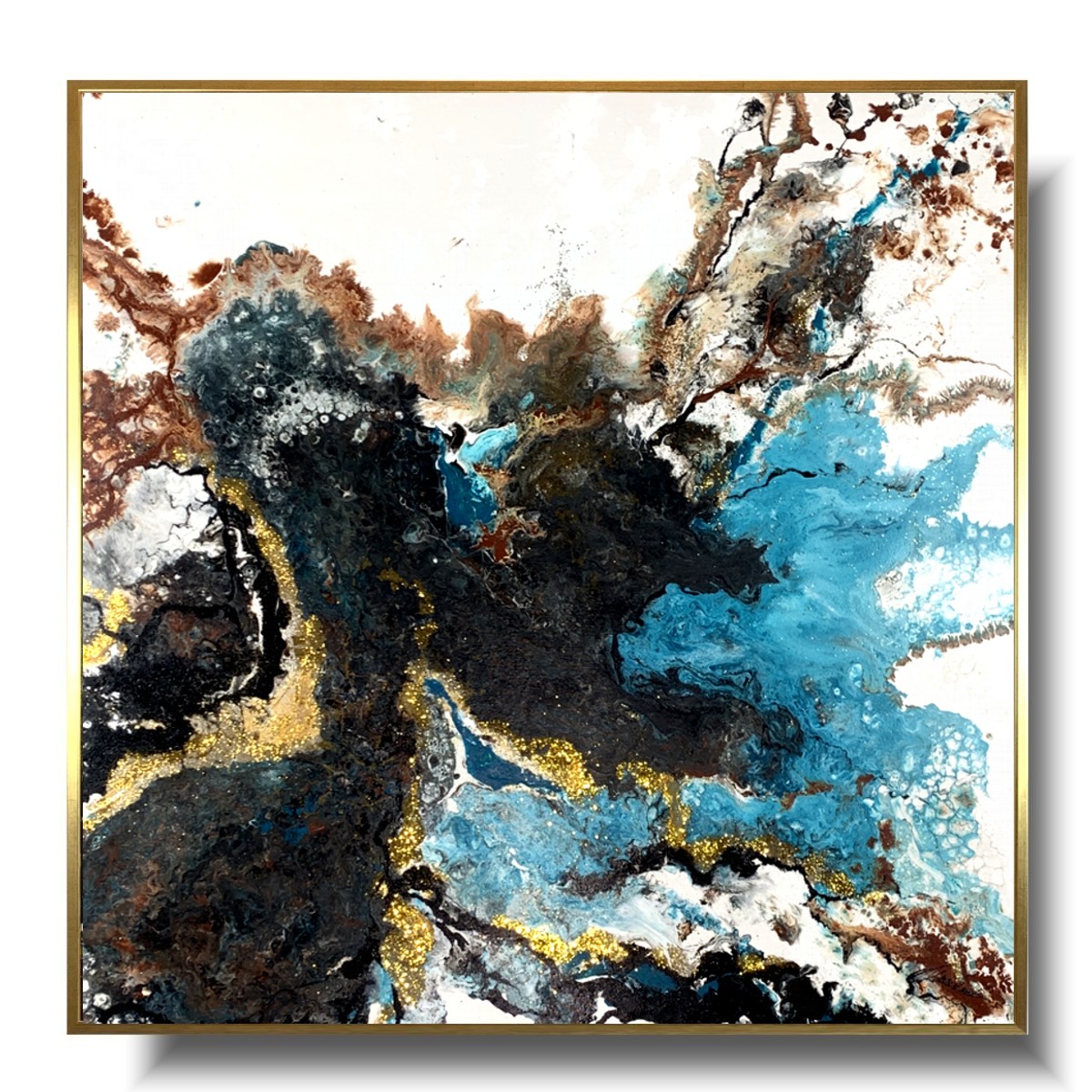 Obraz abstrakcja na płótnie 2097Z „Turkusowy odpływ” 90x90cm