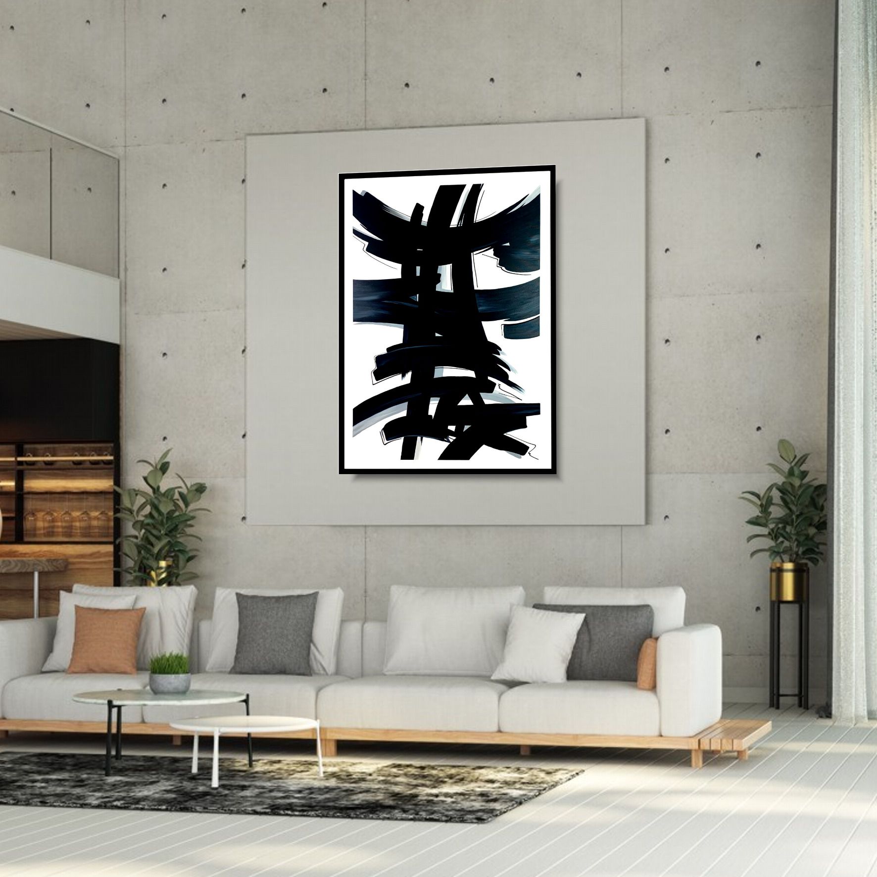 Obraz abstrakcja w ramie 1983Z „Czarny znak” 100x140cm