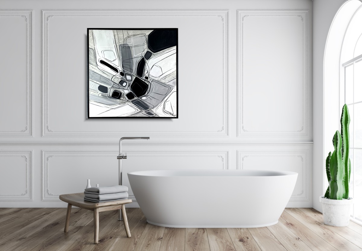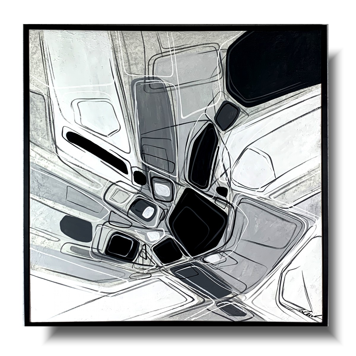 Obraz czarno biały ręcznie malowany na płótnie 2181Z „Abstrakcja czarno-biała” 90x90cm