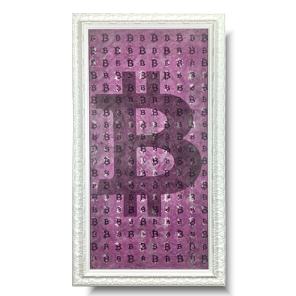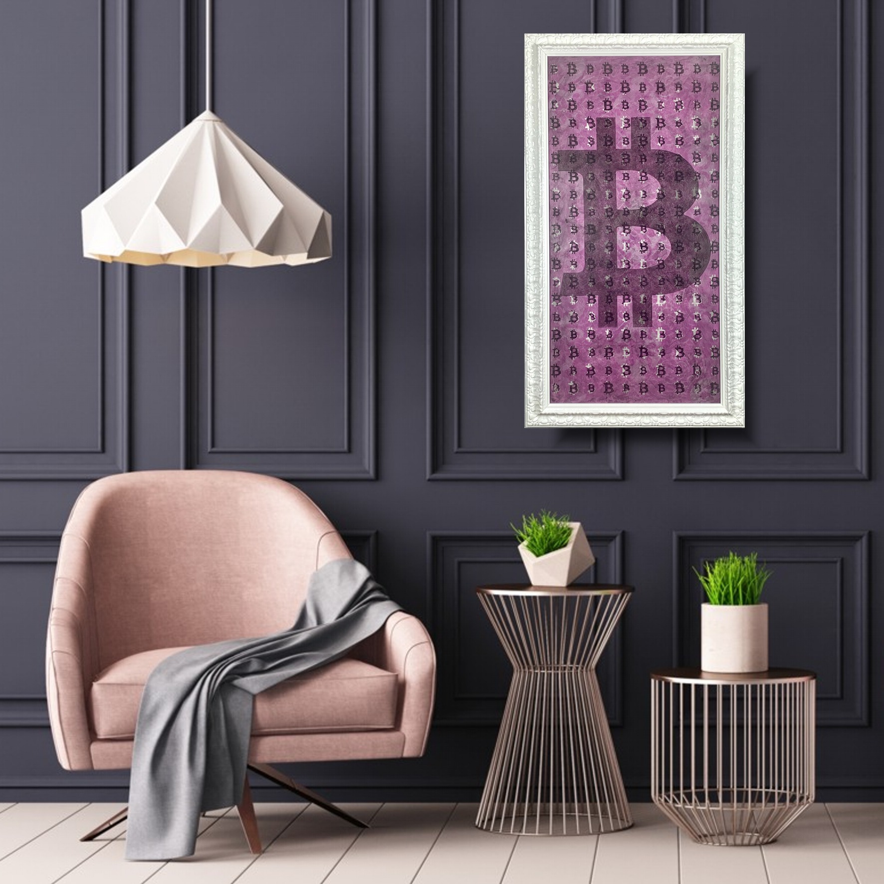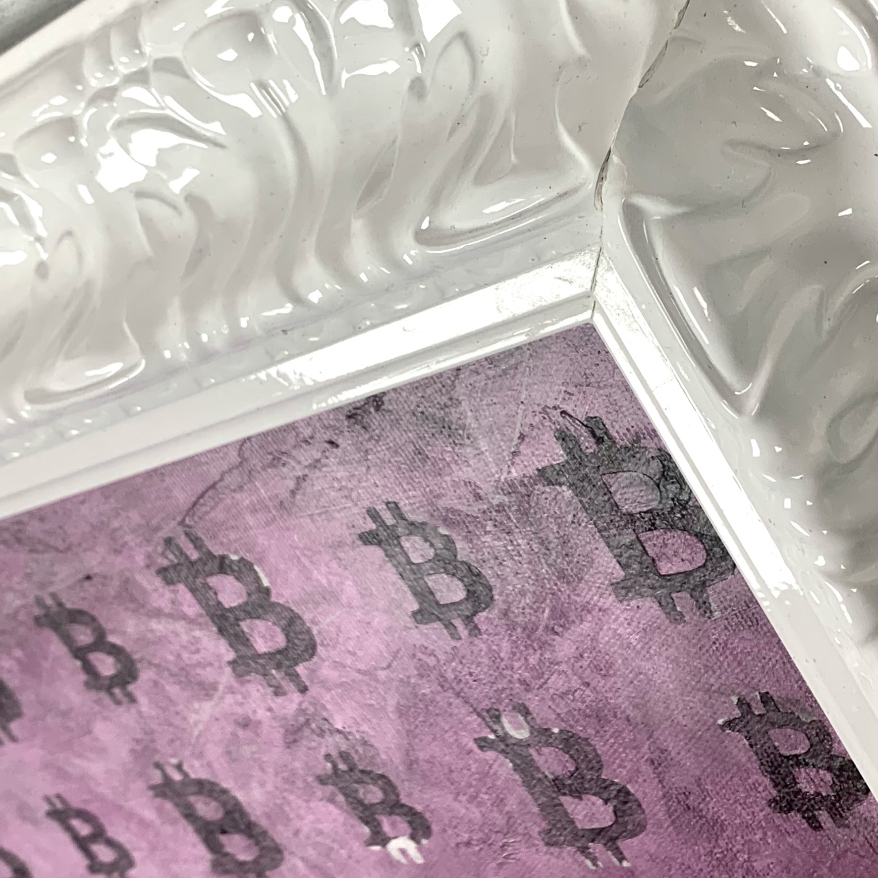 Obraz malowany w ramie 2238Z „Różowy bitcoin” 100x50cm