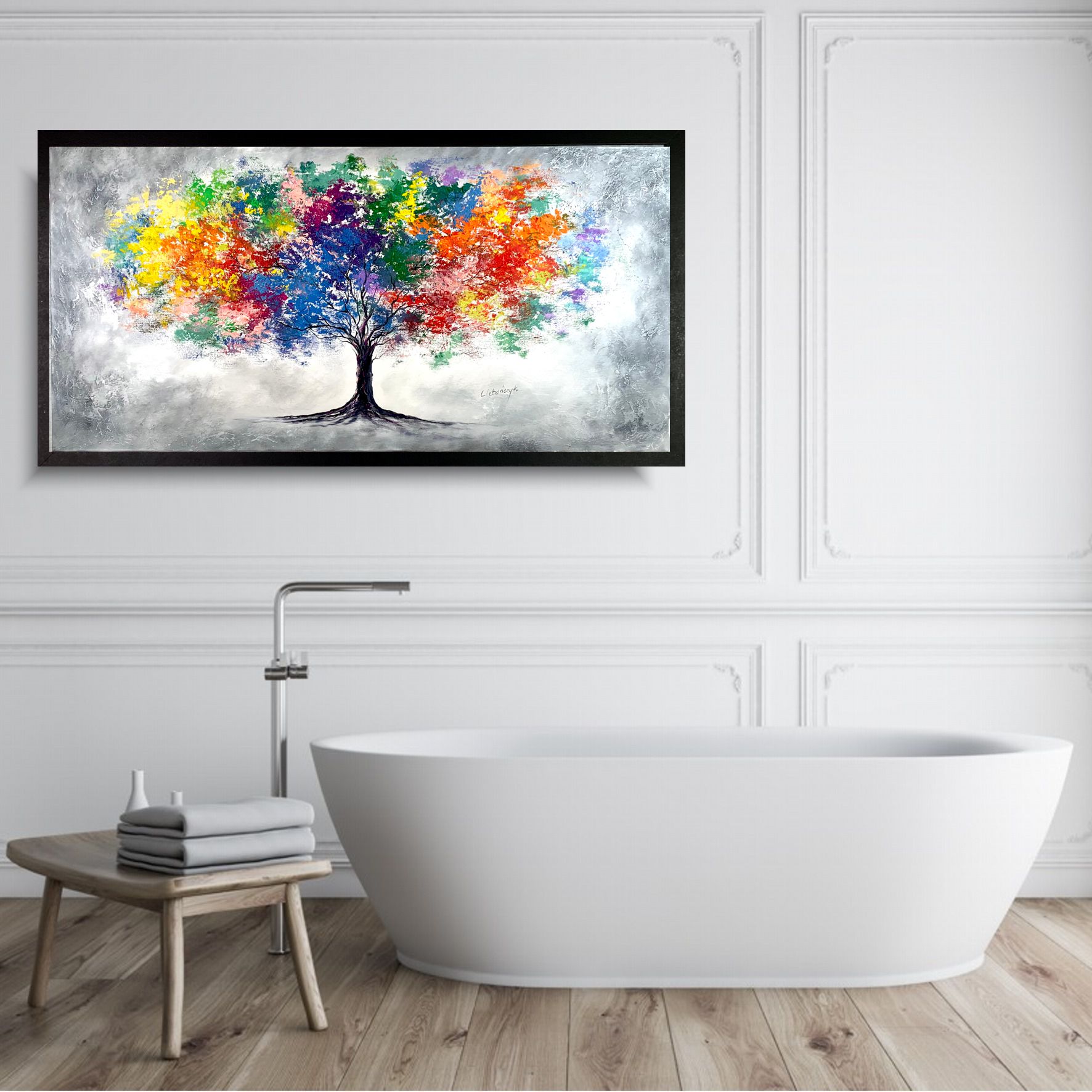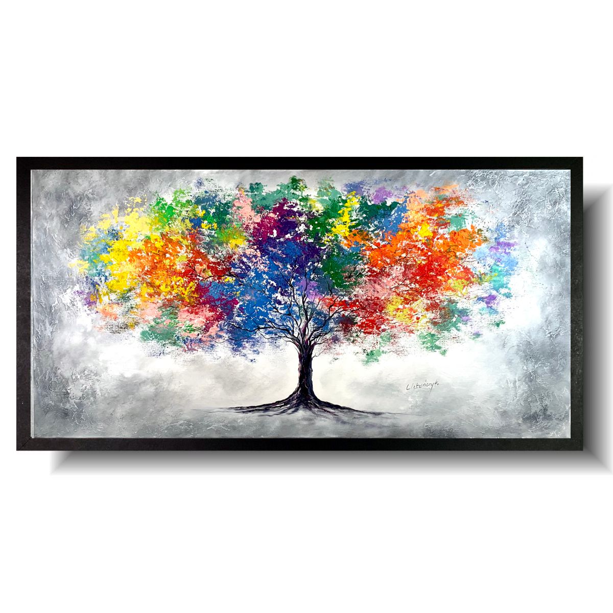Obraz ręcznie malowany 2216Z „Tęczowe drzewo” 120x60cm