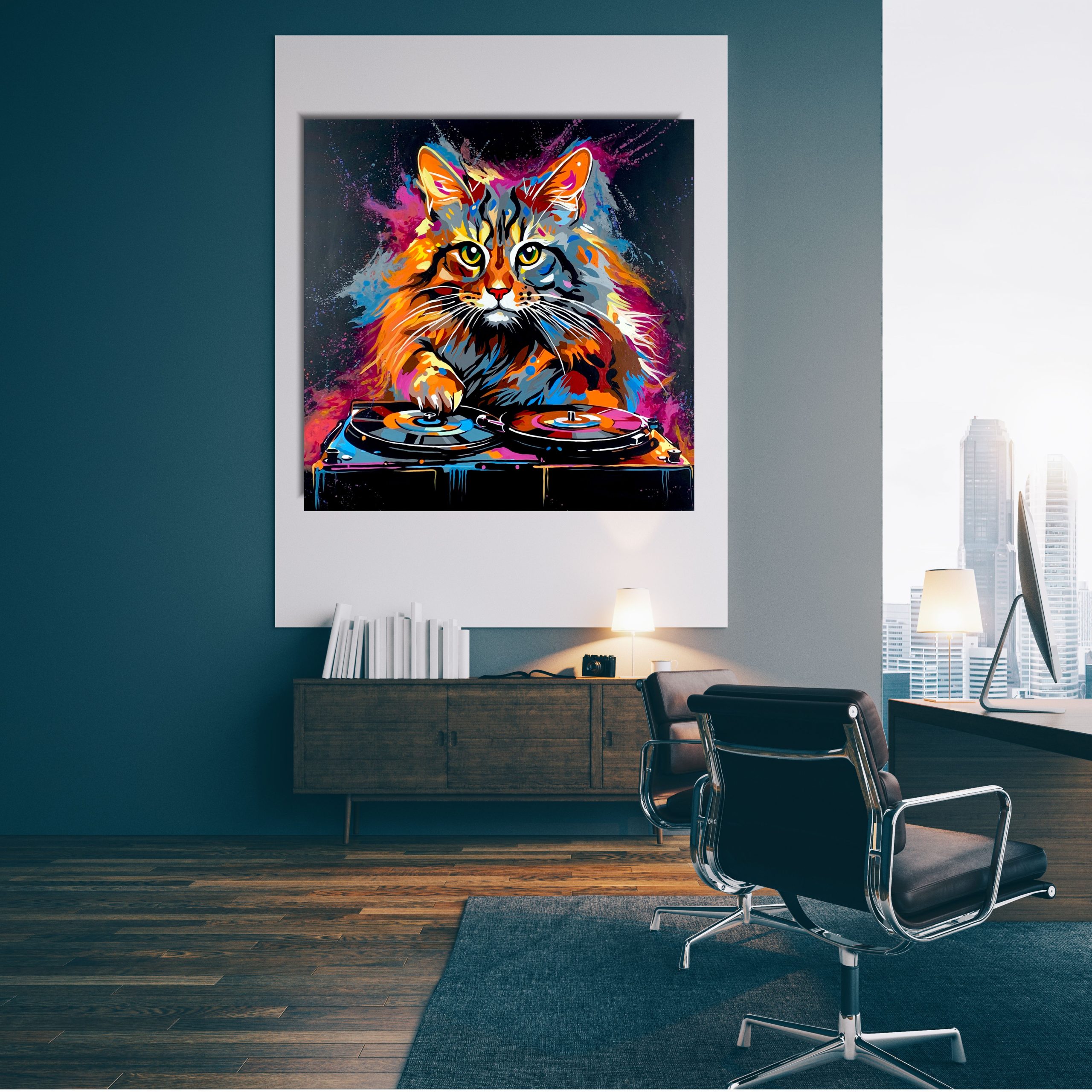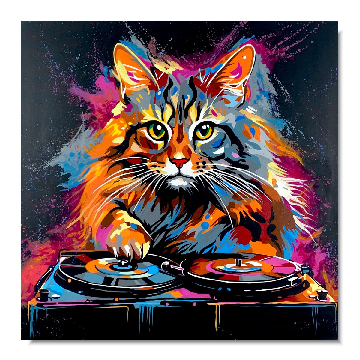 Obraz ze zwierzętami ręcznie malowany na płótnie 2278Z “Obraz z kotem” 90x90cm