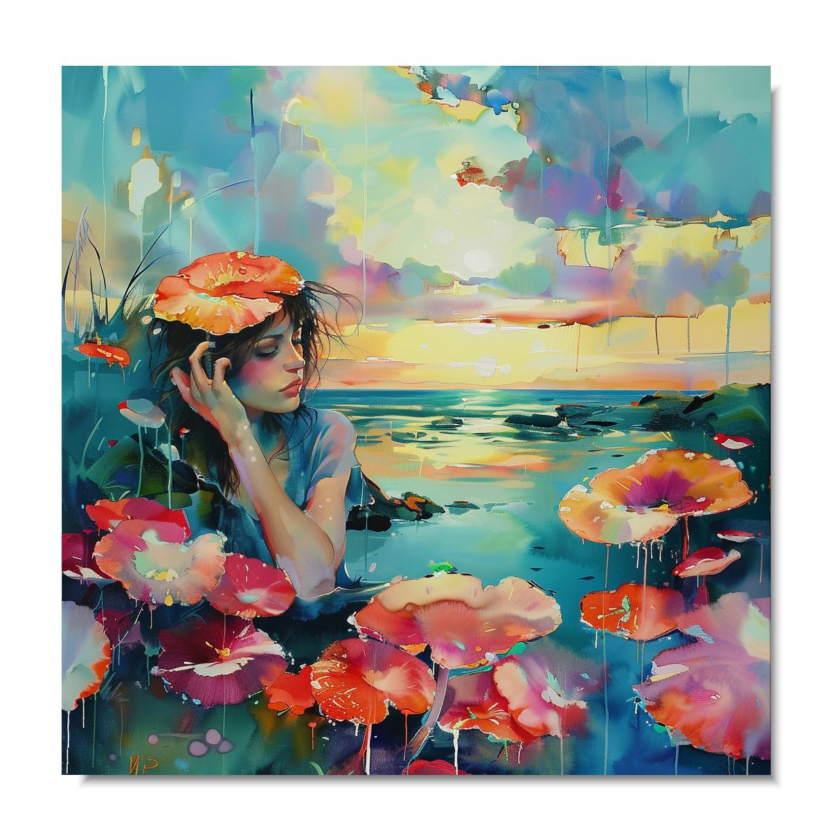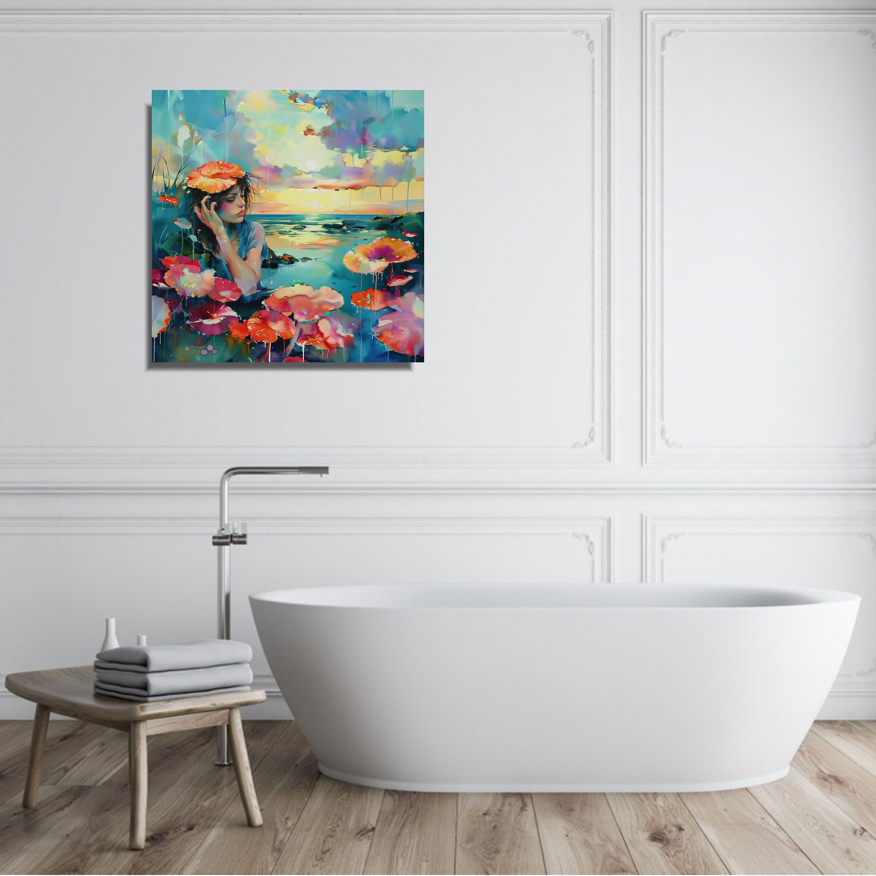 Obrazy do salonu nowoczesne druki cyfrowe WW13 “W kąpieli” 70x70cm