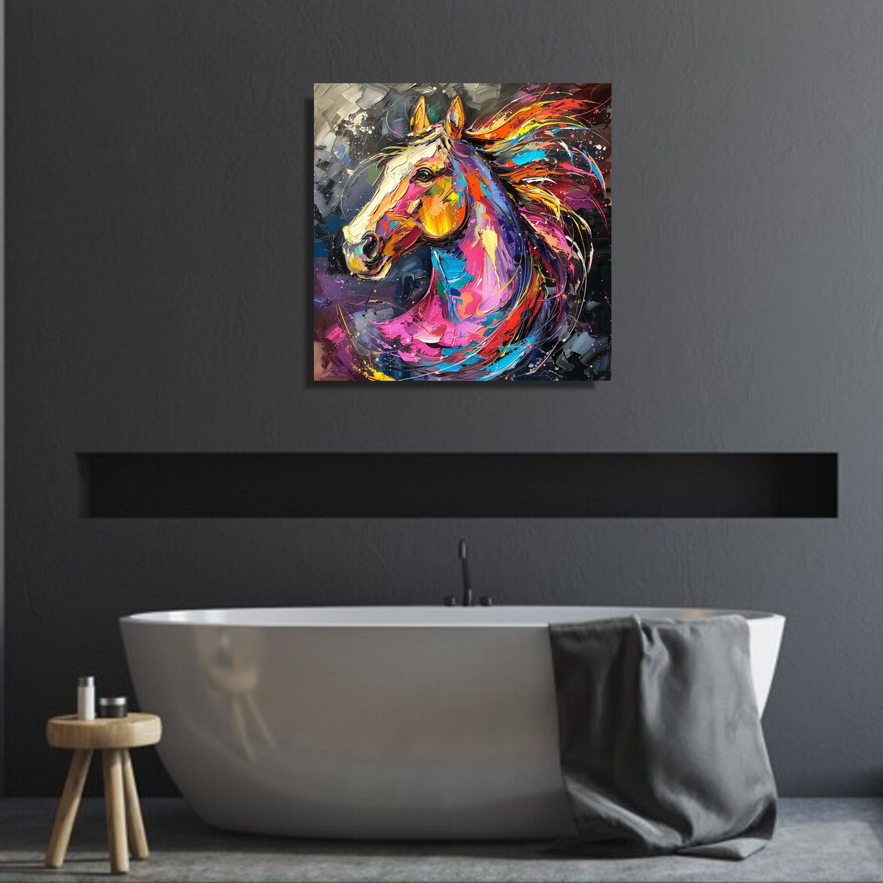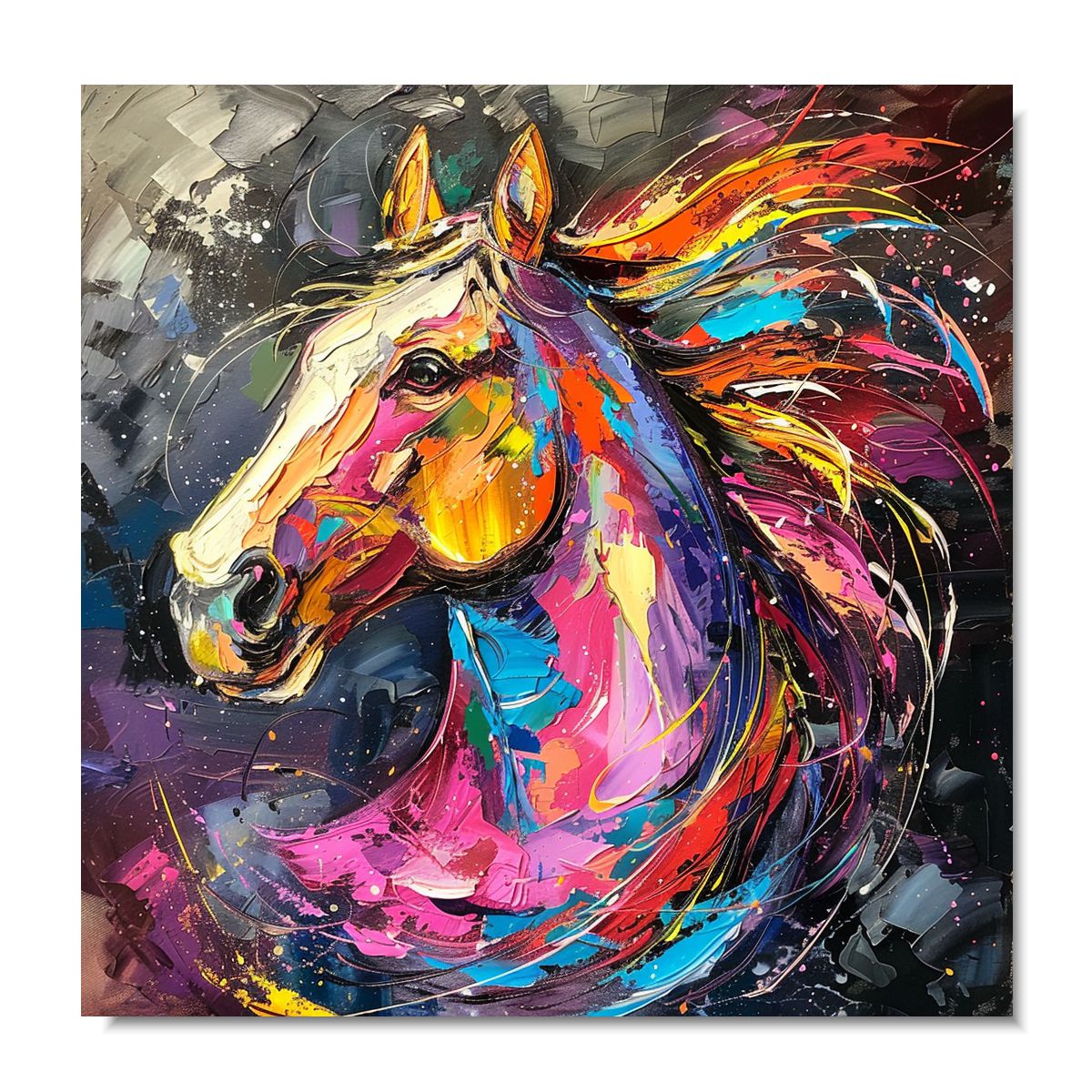 Napisz pierwszą opinię o „Obrazy na ścianę wydruk na płótnie WW8 “Barwny koń” 70x70cm”