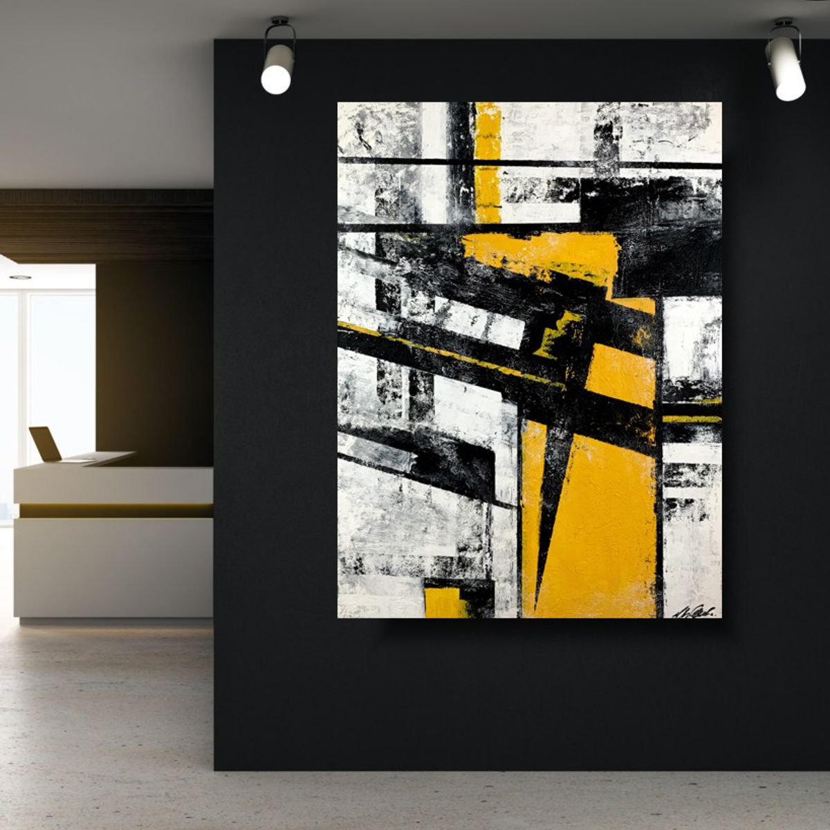Żółty obraz abstrakcja 2151Z „Ostrożność” 120x80cm